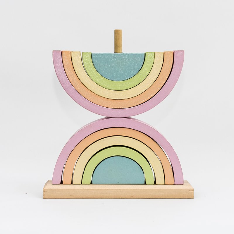 Su madera, imperfecta y natural, les da información sensorial muy valiosa. Sus piezas les ayudan a diferenciar formas y colores. Manipulándolo ganan destreza y coordinación. A través de él van comprendiendo conceptos complejos como el equilibrio, la simetría y la resistencia. Les abre la puerta de par en par al juego simbólico, a construir escenarios e imitar situaciones de la vida real.
