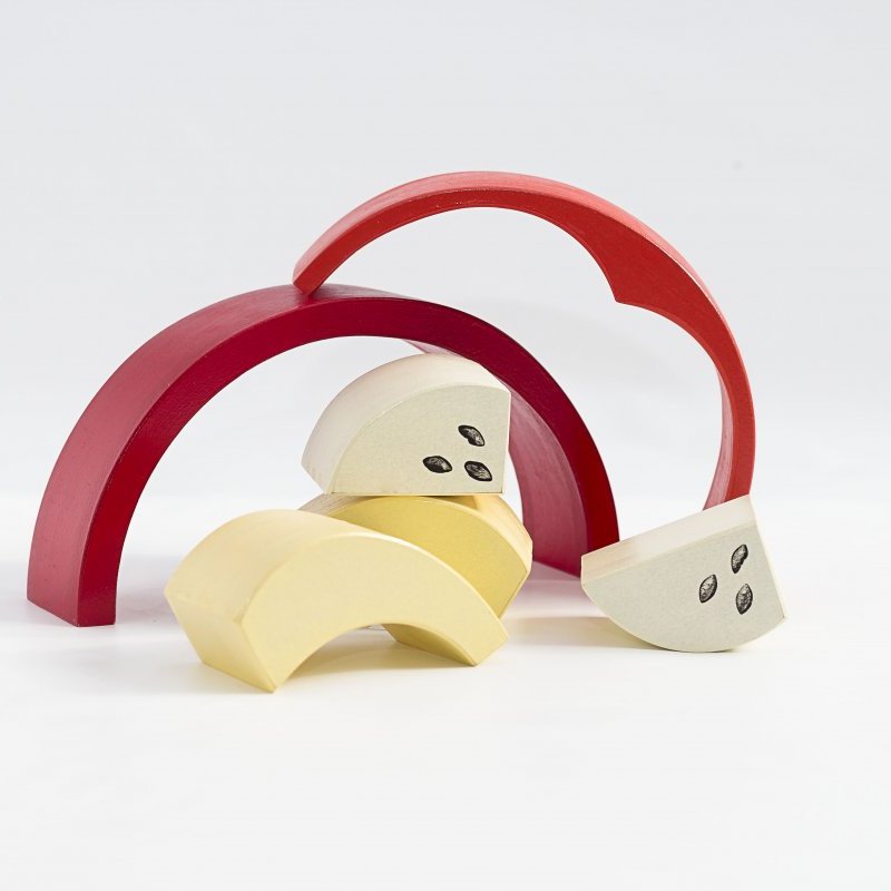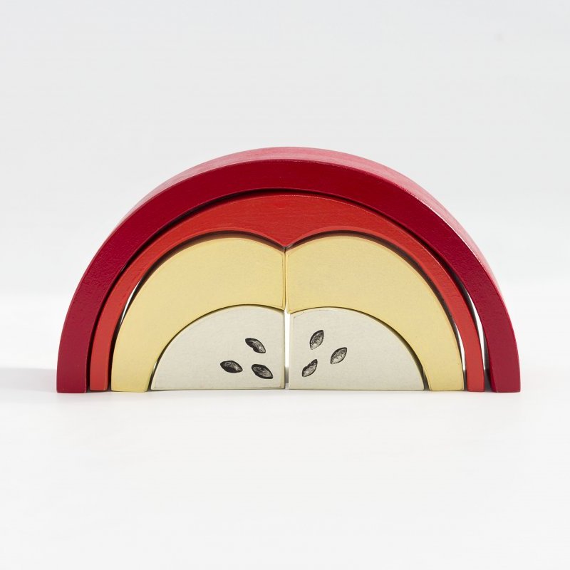 Bloques de construcción con características de frutas, estas ayudaran con la motricidad, distinción de colores, formas, tamaños, pesos.