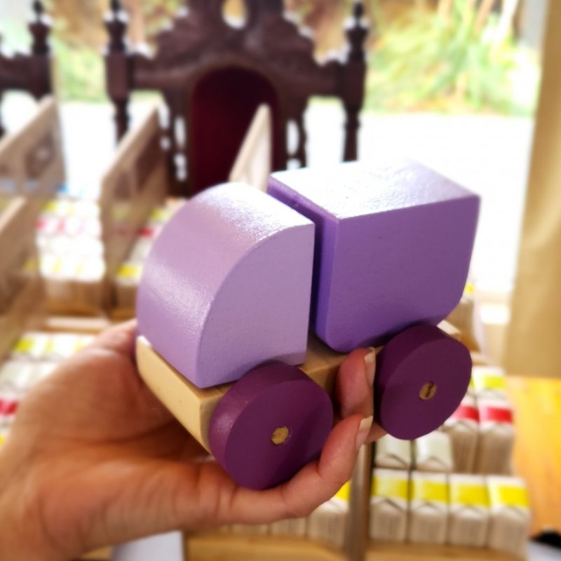 Pequeño camion desarmable, tanto la cabina como su caja son extraibles.